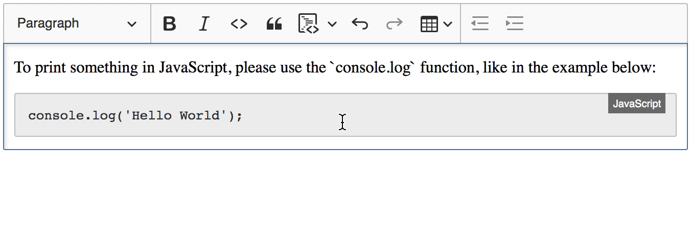 +{@img assets/img/typing-before.gif 770 The animation shows typing before the code blocks in CKEditor 5 rich text editor.}